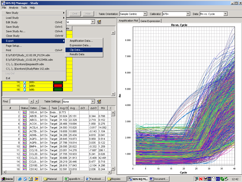2.Obtener los datos de fluorescencia para cada ciclo de la Real-time RT-PCR